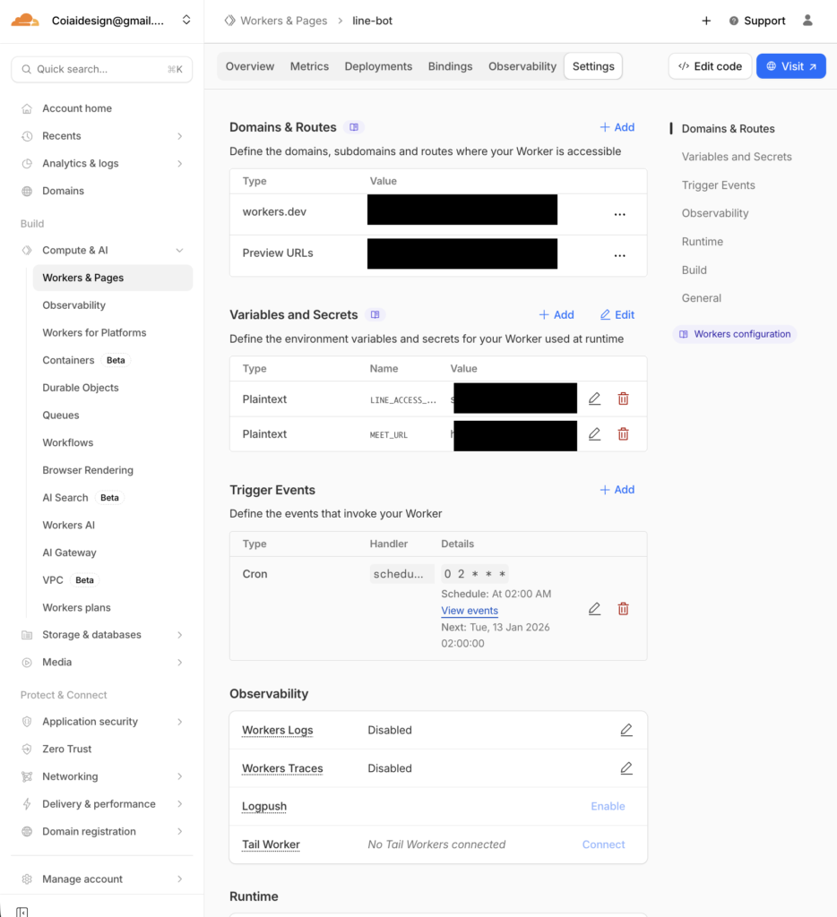 • Cloudflare Cron(Workflow)で毎日実行 → LINEにMeet URLをpush
