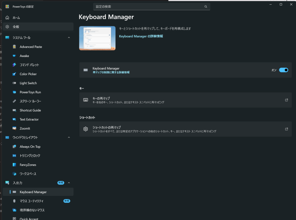 キーの再マップやカスタムショートカットの作成ができる。CapsLockをCtrlに変えたり、独自のショートカットを定義したり。レジストリを触らなくていいのが楽。