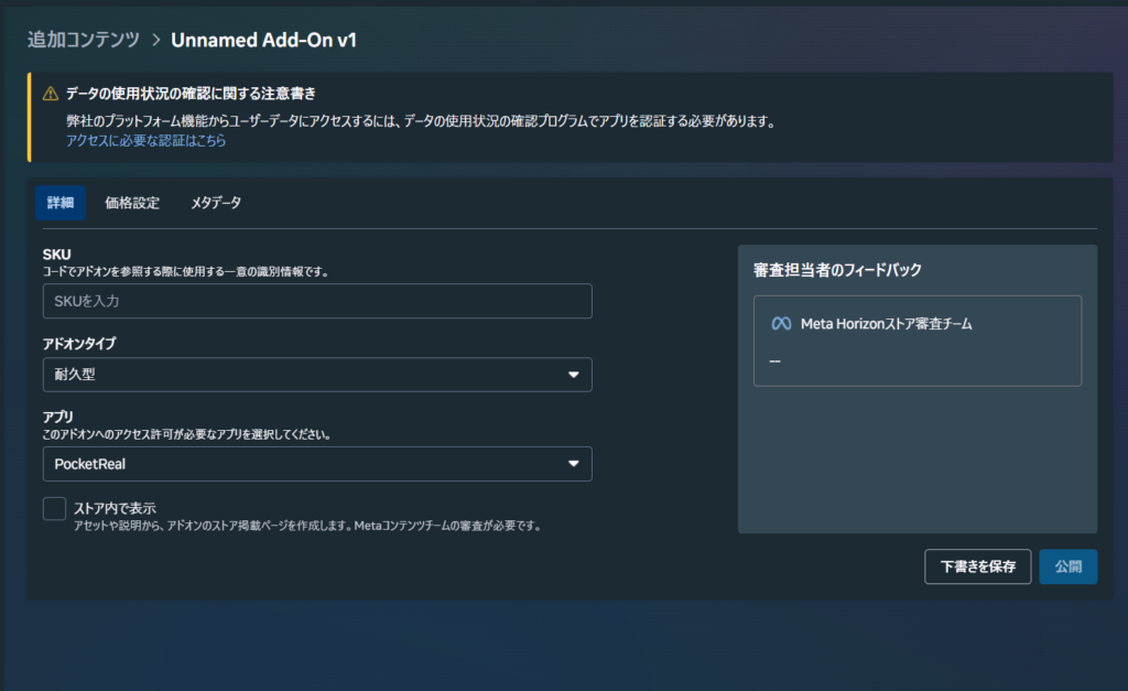 価格設定タブに進むとコンテンツの価格を設定できます。